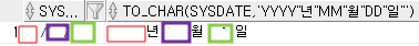 | SELECT SYSDATE, TO_CHAR(SYSDATE, 'YYYY "년" MM "월" DD "일"') FROM DUAL; |