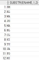 | SELECT SUBSTR(ENAME, 1, 2) FROM EMP; |