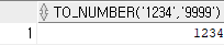 | SELECT TO_NUMBER('1234', '9999') FROM DUAL; |