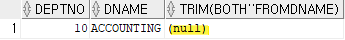 | SELECT DEPTNO, DNAME, TRIM(BOTH '' FROM DNAME) FROM DEPT WHERE DEPTNO = 10; |