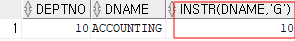 | SELECT DEPTNO, DNAME, INSTR(DNAME, 'G') FROM DEPT WHERE DEPTNO = 10; |