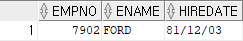 | SELECT EMPNO,ENAME, HIREDATE FROM EMP WHERE LOWER(ENAME) = 'ford'; |