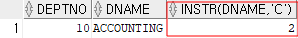 DEPTNO 10번째의 DNAME에서(ACCOUNTING) 'C' 는 ACCOUNTING 의 2번째에 있다