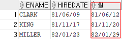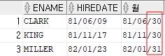 | SELECT ENAME, HIREDATE, LAST_DAY(HIREDATE) AS 월 FROM EMP WHERE DEPTNO = 10; |