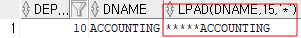 | SELECT DEPTNO, DNAME, LPAD(DNAME, 15, '*') FROM DEPT WHERE DEPTNO = 10; |