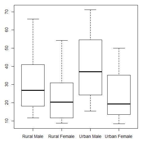 # VAdeaths 데이터 셋을 상자 그래프로 시각화하기